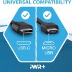 FEATURES / POWER SPECS : Only Pwr+ Chargers Have Extra Long 6.5 Ft Power Cords / Smart Power: 5V 2A 2.5A 3.5A 5W 9W 10W 15W 18W Powerfast Quick Rapid Fast Charger / Steel-Reinforced Micro-USB + USB-C Type C Tip for Extended Usability / Made in Taiwan